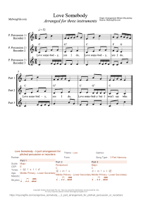 • You can use any instruments which have a range of at least one octave in C Major to play parts one and two. Part 3, (the melody) needs a full C Major octave, plus a high D.