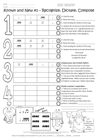 Known And New Number 1 - Recognise - Dictate - Compose A worksheet covering rhythmic dictation, composition, analysis of...