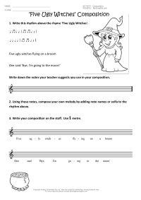 Five Ugly Witches (Composition) A step-by-step composition worksheet which guides students through writing a melody to a...