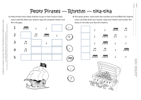 Pesky Pirates tika-tika (Rhythmic Dictation) A cute worksheet for early practise of the rhythmic element 'tika-tika'.