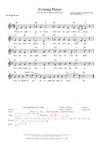 Evening Prayer (do = Bb) This beautiful song is suitable for advanced unison singing.