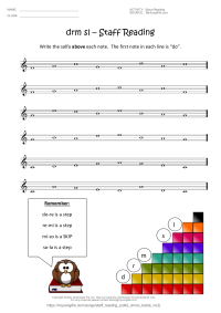 Staff Reading (Solfa drmsl Treble no2) This worksheet has noteheads written on the staff and students are to write the...