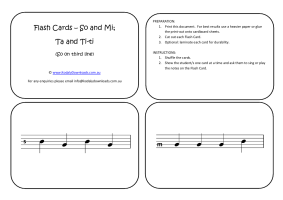 Flash Cards (Stave ms and ta ti-ti-so on 3rd line) Practice for melodic elements so and mi and rhythmic elements ta and...