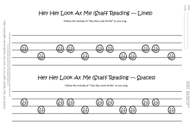Hey Hey Look At Me (Staff Reading Lines and Spaces) Early music reading activity for "Hey Hey Look At Me" on the lines...
