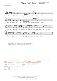 Mama Don't 'Low (4-4) A catchy, rhythmic song which lends itself to word improvisation - and fun!