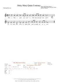 Mary Mary Quite Contrary A simple English nursery rhyme in 4/4 metre.