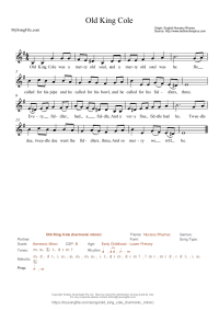 Old King Cole (harmonic minor) An English nursery rhyme in harmonic minor tonality.