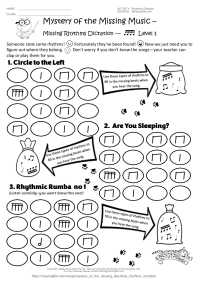 Mystery of the Missing tika-tikas Rhythmic Dictation One worksheet - 4 levels of structured learning for different ages...