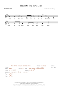 Haul On The Bow Line (Common Time) This catchy sea shanty has a range of a minor 6th and starts and finishes on 'high...